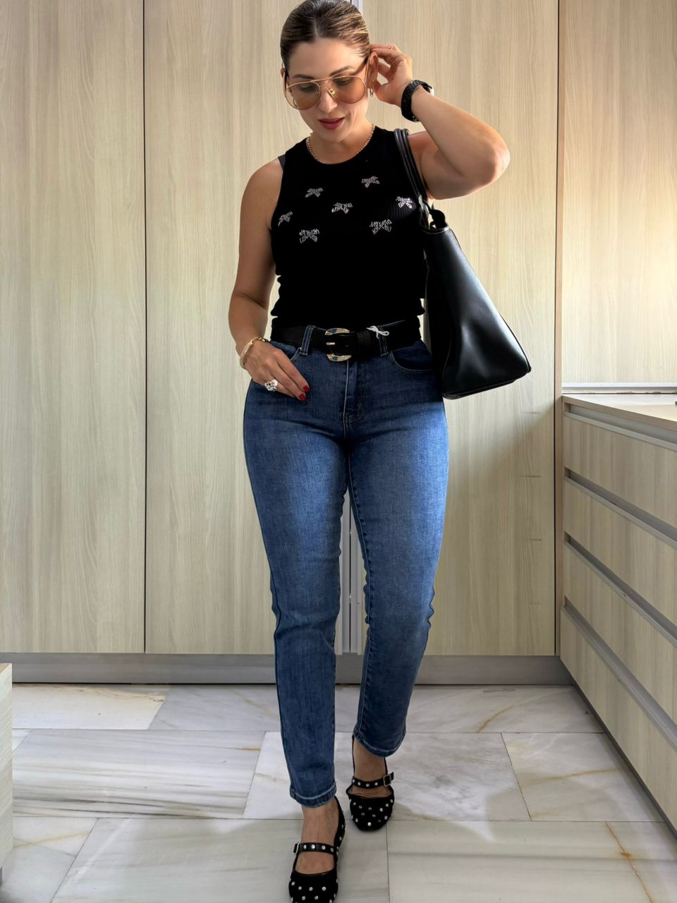 Hermosa blusa Basica en tejido fino con lacitos brillantes en 3 colores: Rosado, Blanco y Negro