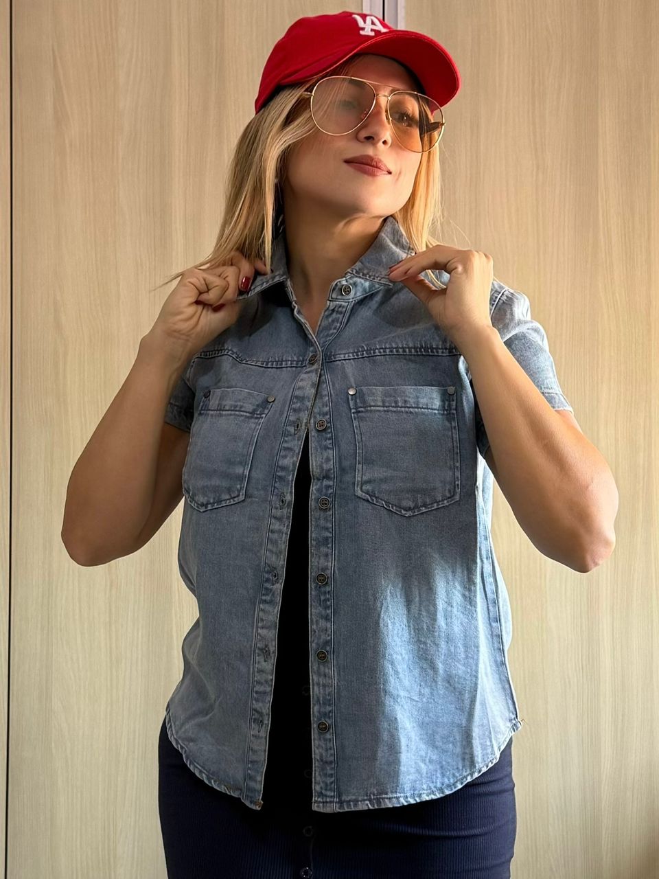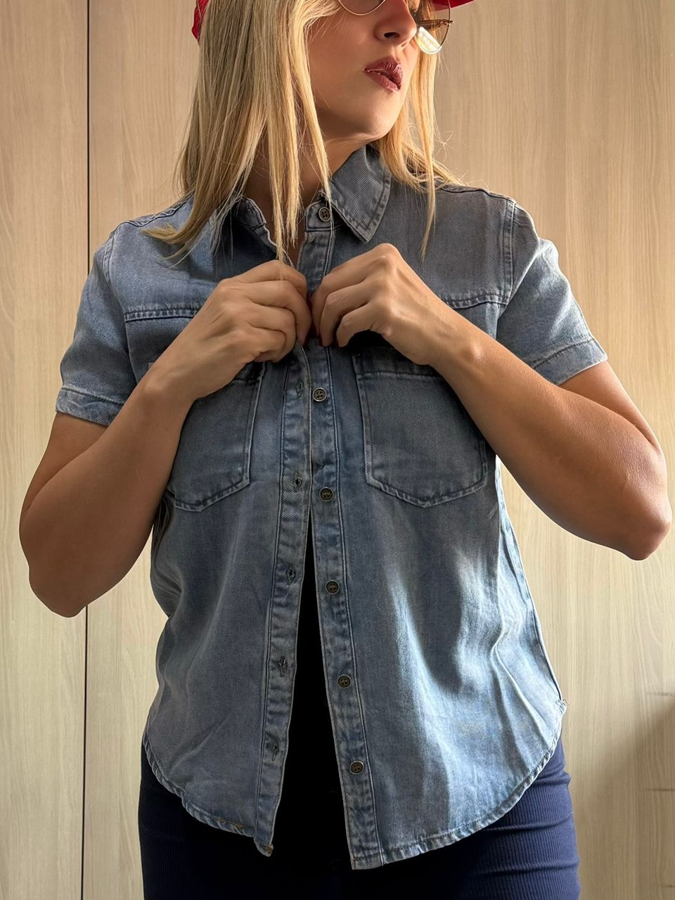 Hermosa camisa manga corta Denim